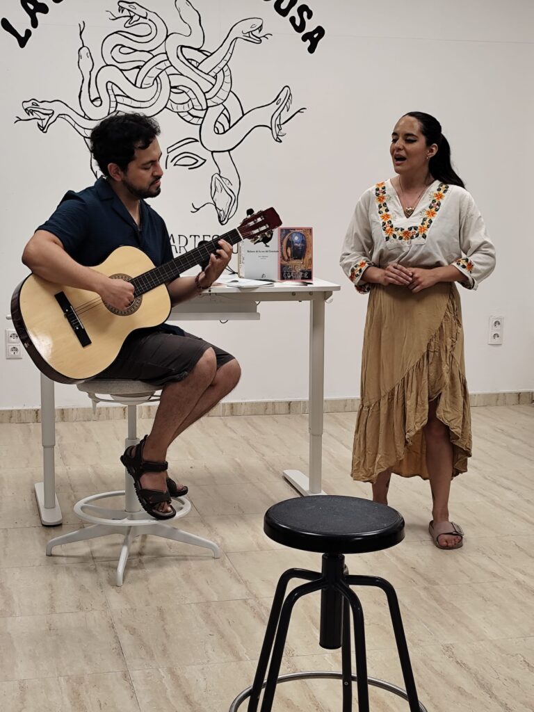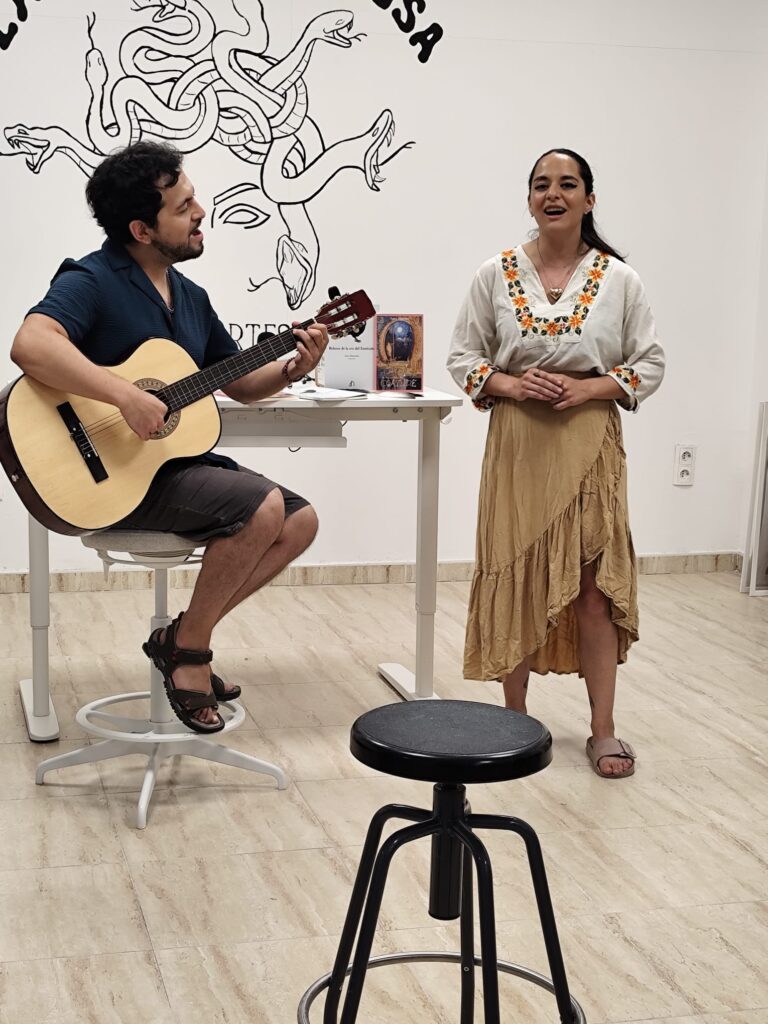 Uno de los momentos más bonitos llegó cuando la propia Aura cantó. Ese cruce entre su faceta musical y literaria hizo que la presentación se alejase de lo habitual y se convirtiese en algo mucho más vivo, más emocional. La combinación de palabra, imagen y música en directo generó una experiencia distinta, en la que todo fluía de forma muy natural.