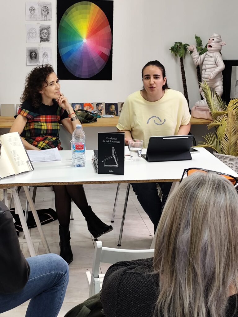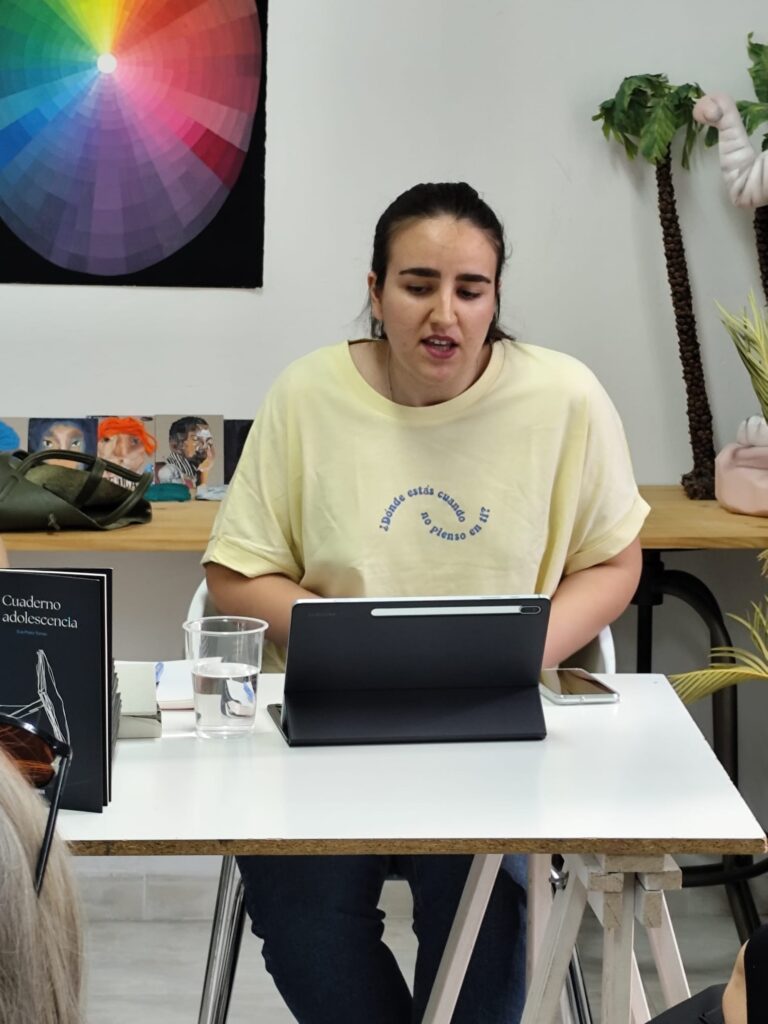 La atmósfera que se generó fue realmente bonita. Hubo una conexión muy cercana con el público, que arropó a Eva en todo momento. Tanto ella como Macu leyeron varios de los poemas, dando voz a textos cargados de emoción, nostalgia y vivencias propias de la adolescencia.